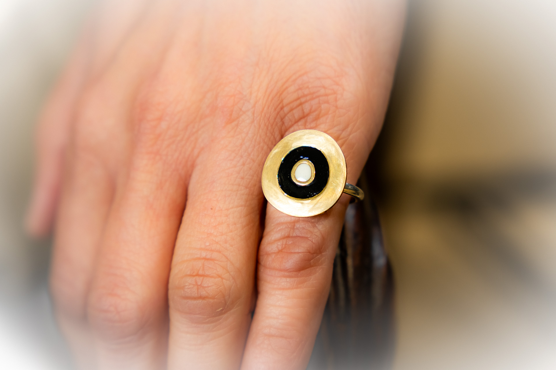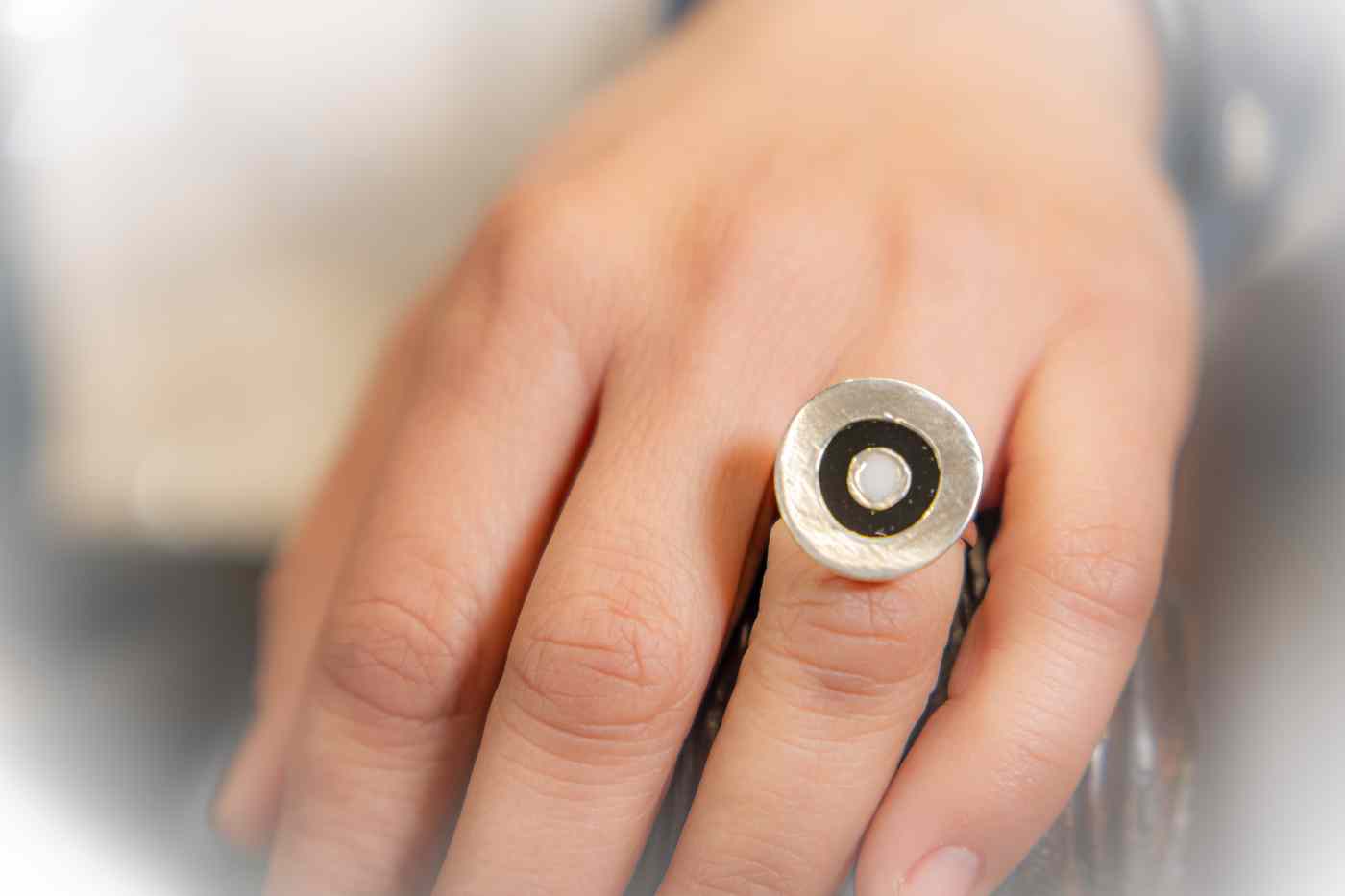 Χειροποίητο δακτυλίδι, εξολοκλήρου από ασήμι 925 ή ορείχαλκο με ασημένια γάμπα, με χρωματιστή υάλωση.
