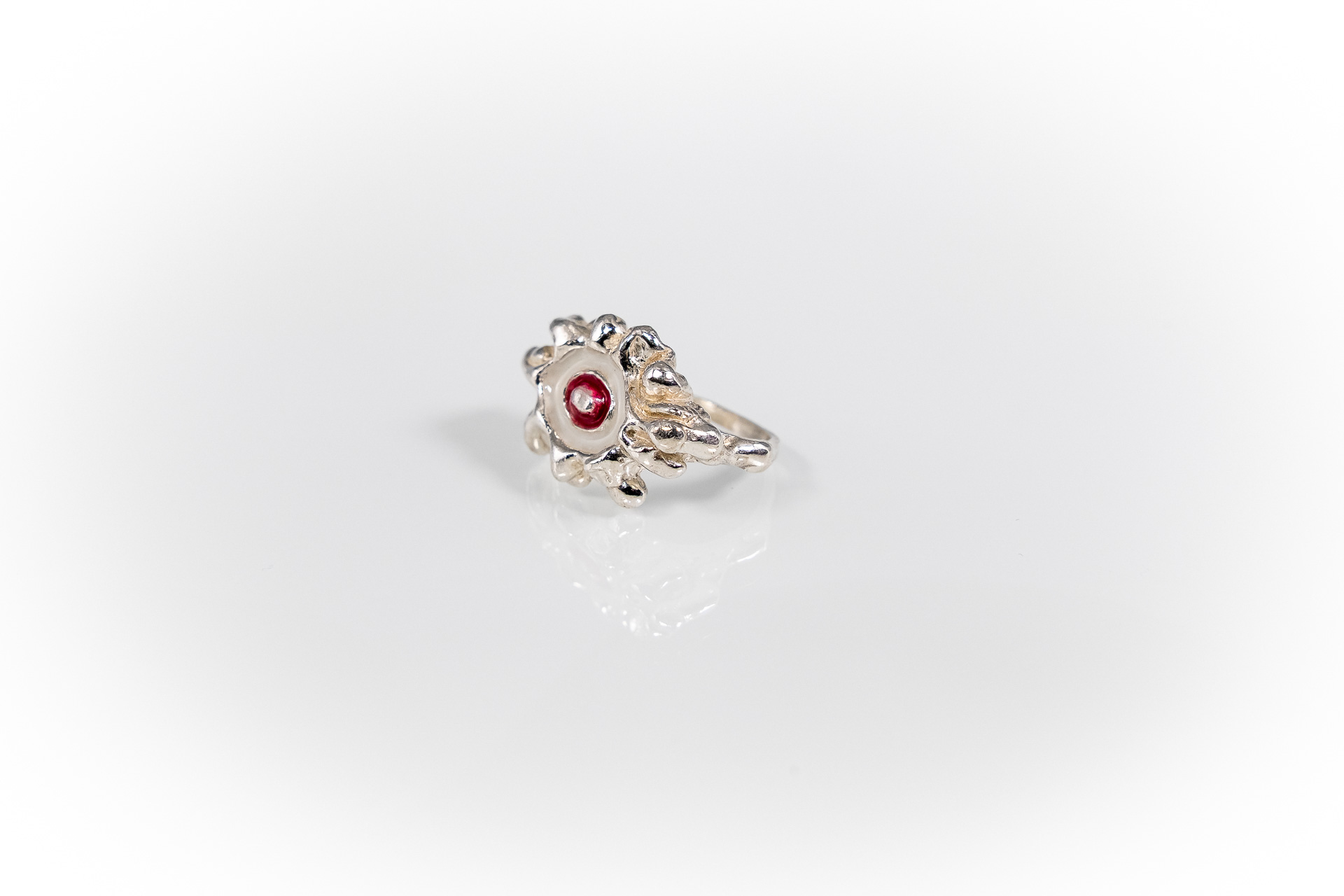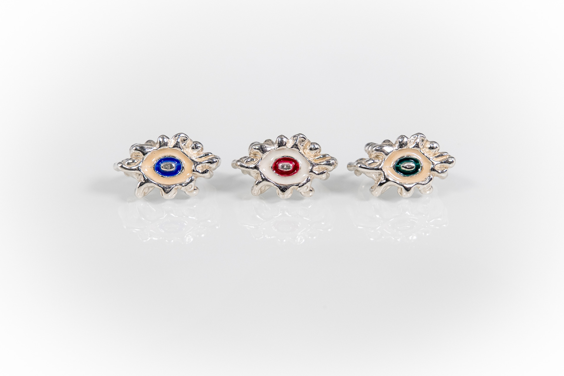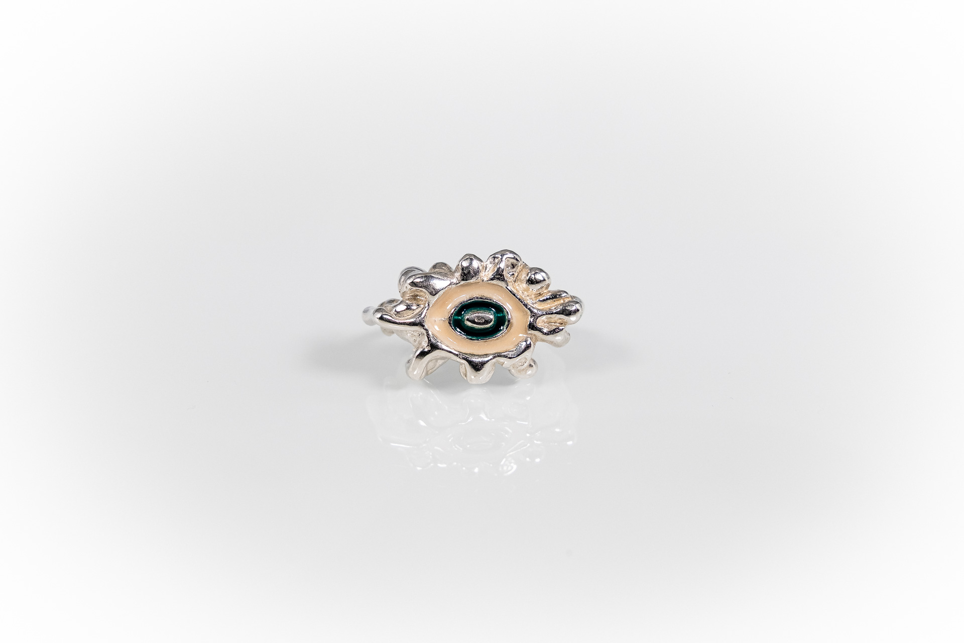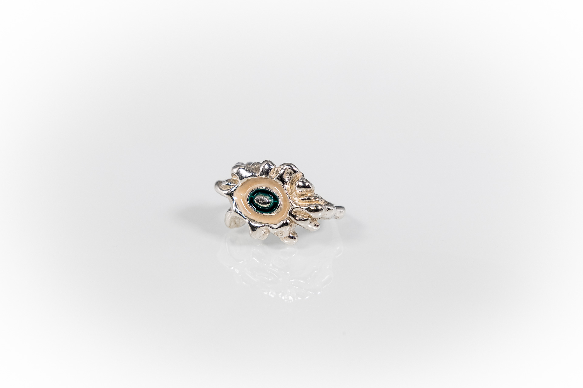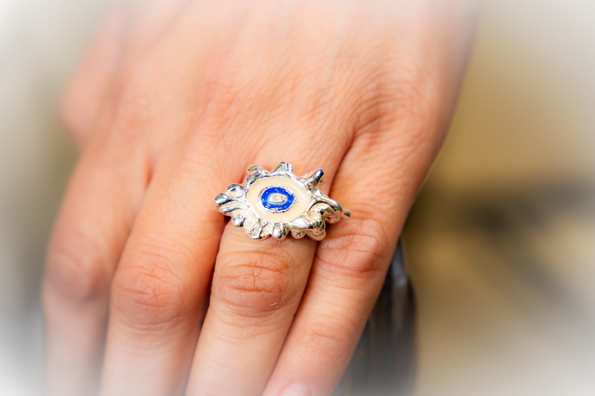 Χειροποίητο δακτυλίδι φτιαγμένο με την τεχνική cera persa / lost wax technique, από ασήμι 925, με χρωματιστή υάλωση σε επιλογμένα χρώματα.
